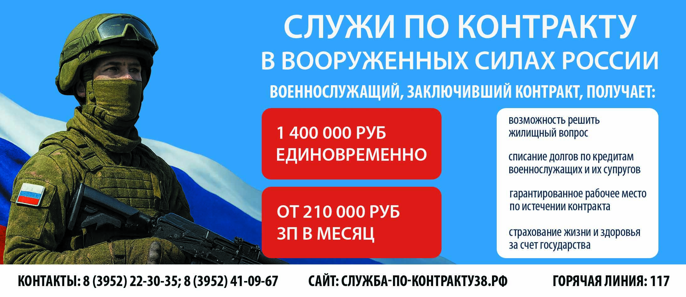 Горячая линия по вопросам службы по контракту – 117, 8 (3952) 22-30-35.
